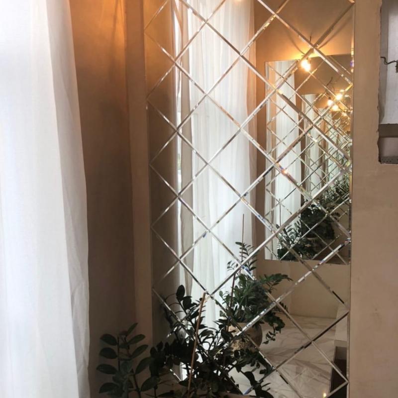 Использована серебряная зеркальная плитка «вытянутый ромб».